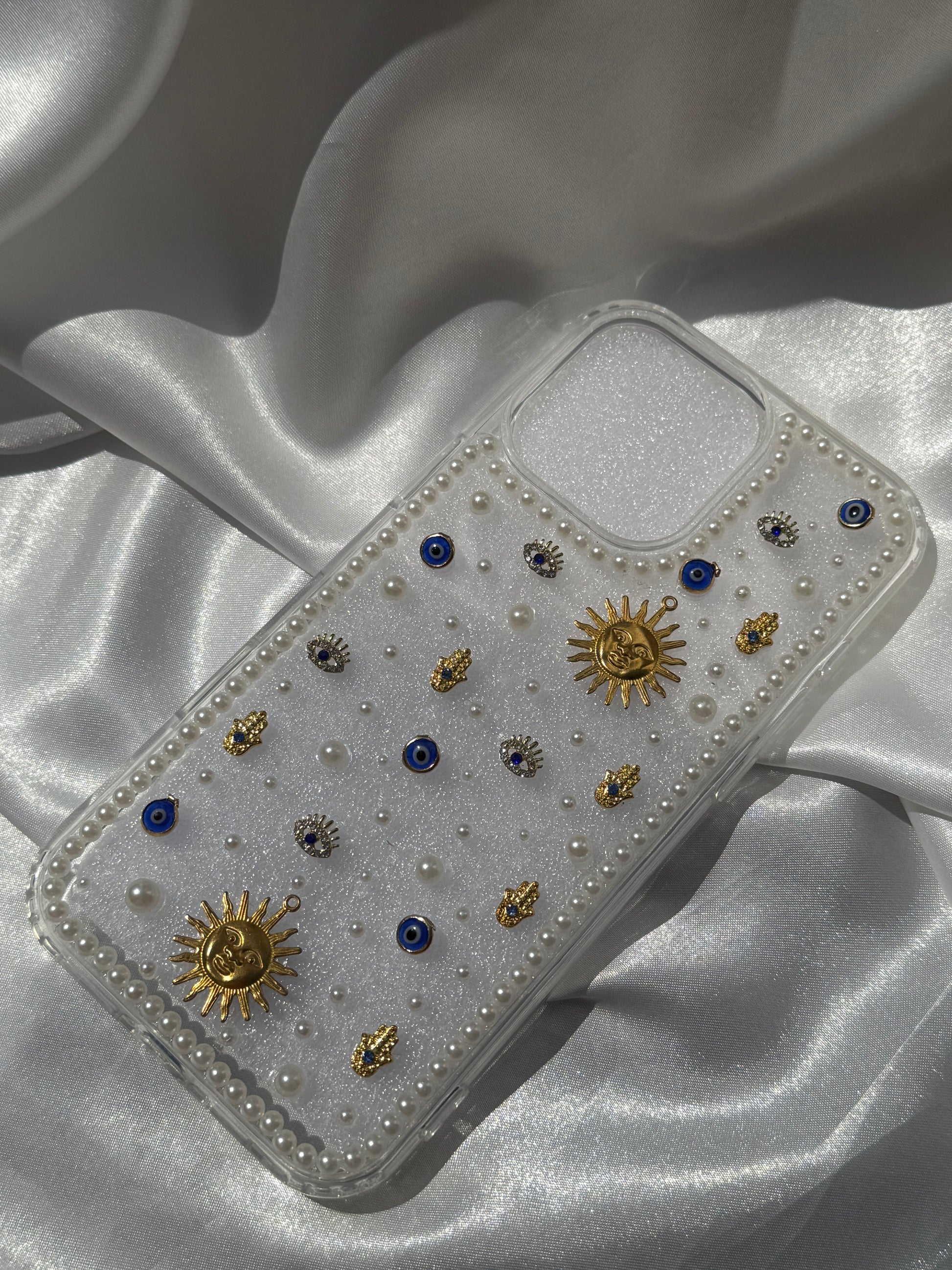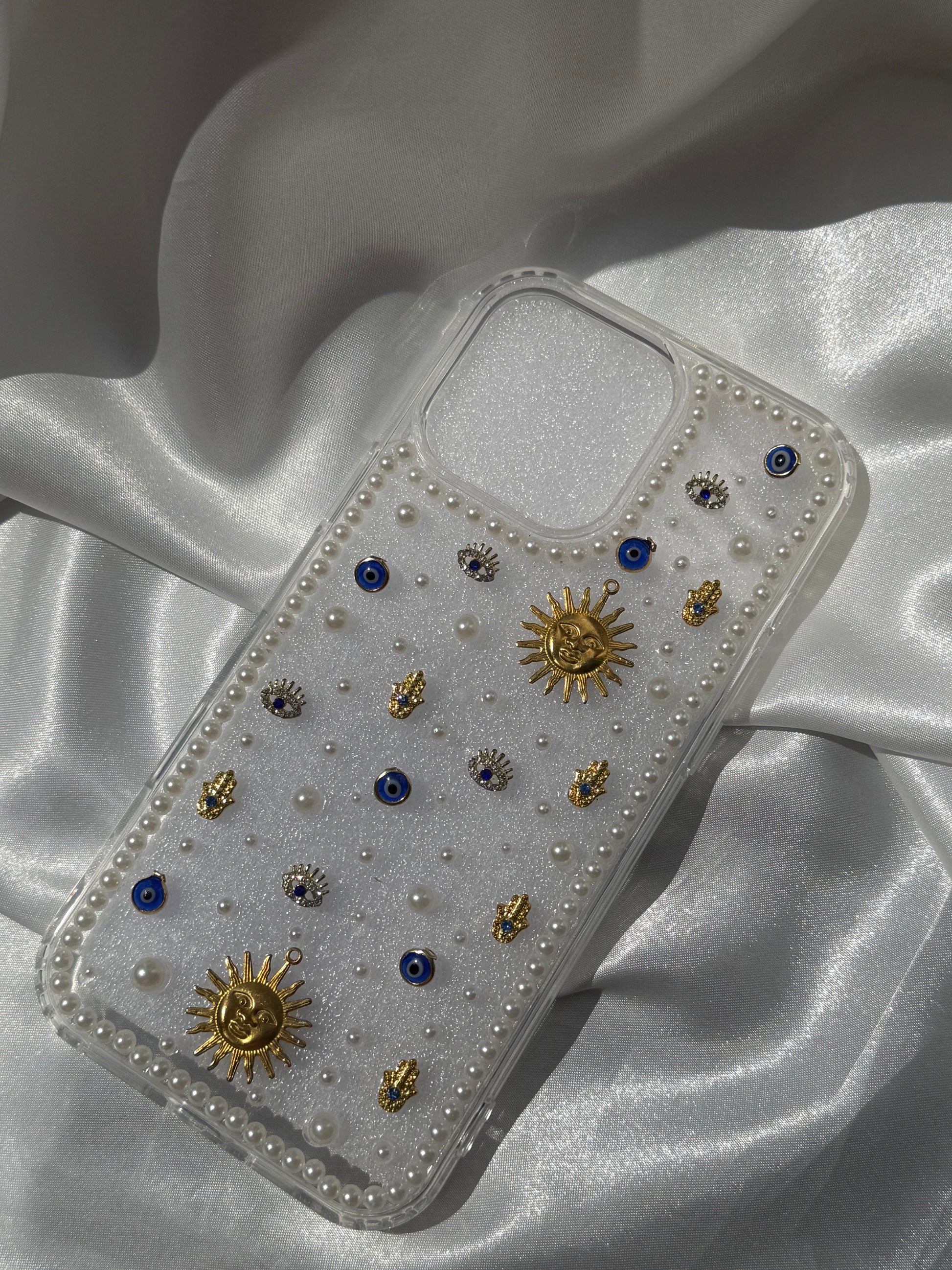 Aesthetic Rhinestone and Pearls Evil Eye Phone case